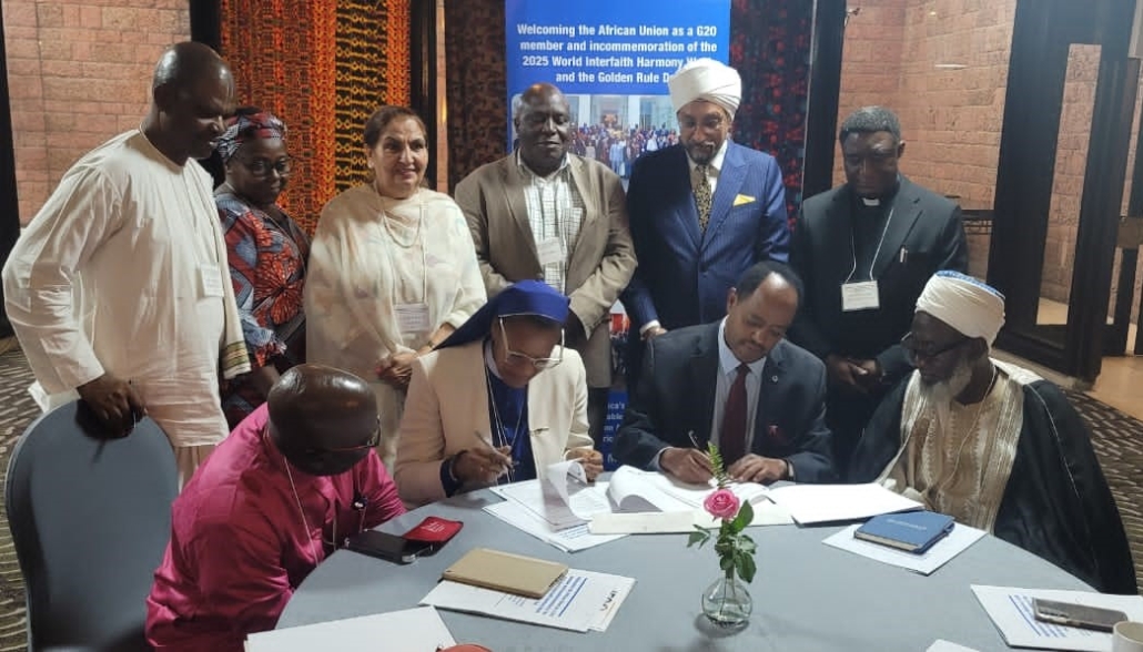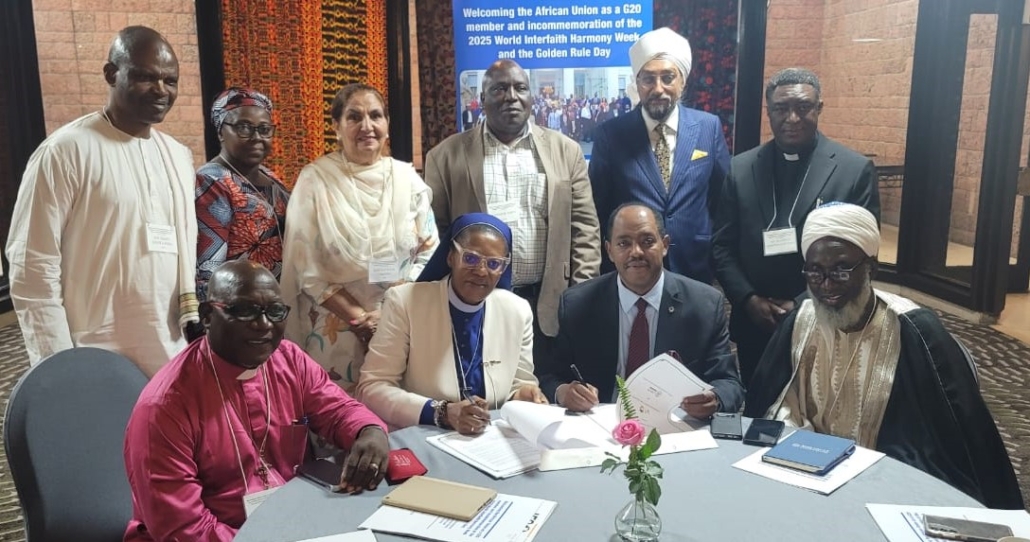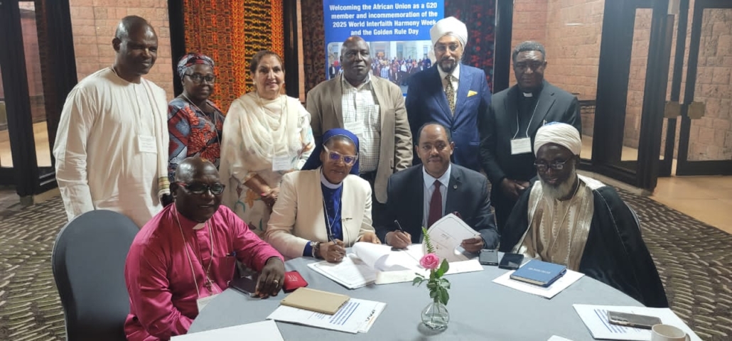In order to sustain and scale its impact, the COFP Foundation continues to seek for meaningful partnerships and collaborations with likeminded organizations, spirited individuals and even government agencies to be able to fully pursue the course its mission. In the month of May 13th, 2025, the Foundation signed a Memorandum of Understanding (MoU) with the United Religions Initiative (URI), in Addis Ababa, Ethiopia during the interfaith harmony week, a forum that brought together different religions with the intention of seeking common ground for peace and development in Africa. The United Religions Initiative (URI) is a global grassroots interfaith network with over 1,100 member groups and organizations, known as Cooperation Circles, spread across the world. The signing of a Memorandum of Understanding (MoU) between the United Religions Initiative (URI) and the Cardinal Onaiyekan Foundation for Peace (COFP) marked the beginning of a collaborative journey for justice, peace and development in Africa and beyond during this crucial event.